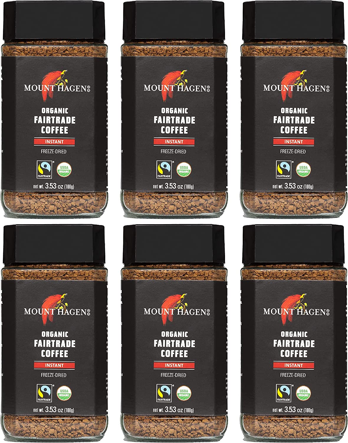 Mount Hagen 3.53oz Organic Freeze Dried Instant Coffee - 6 pack | Eco-friendly Coffee Made From Organic Medium Roast Arabica Beans | Fair-Trade Coffee Instant [6 x 3.53oz Jar]