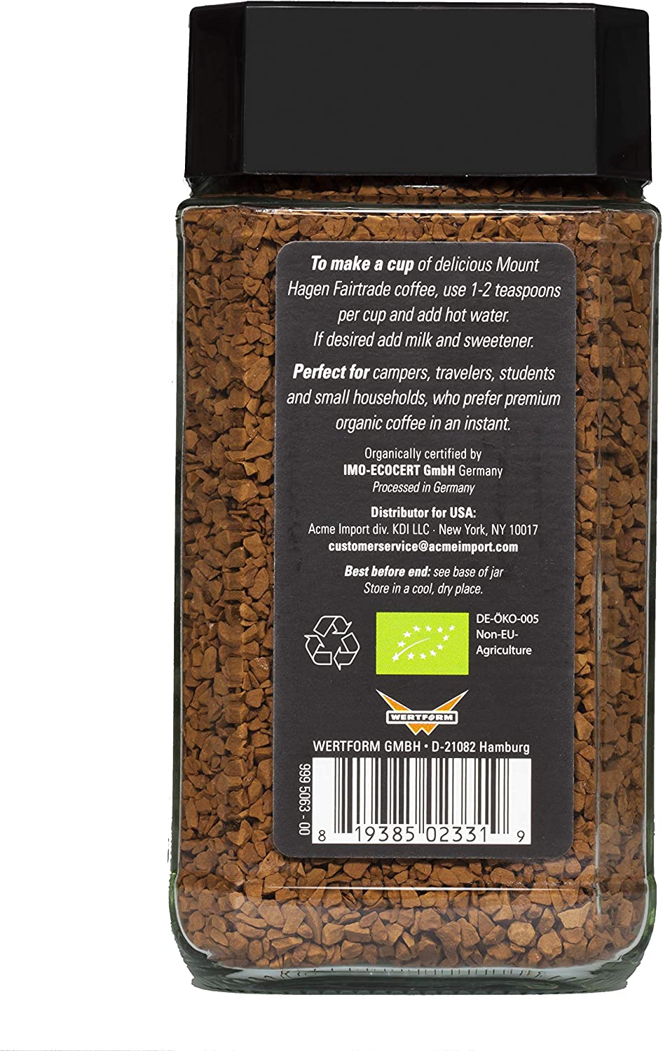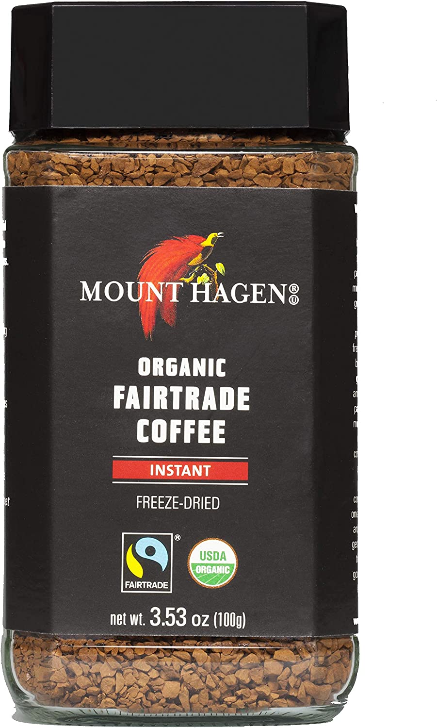 • AWARD-WINNING: Mount Hagen consistently tops lists of best instant organic coffees, becoming many a connoisseur's favorite joe-on-the-go. (Google it, and you’ll see!) Our superior instant coffee is made from 100% USDA Organic, Fairtrade Arabica beans. Mount Hagen coffee is also gluten-free and certified OU Kosher.