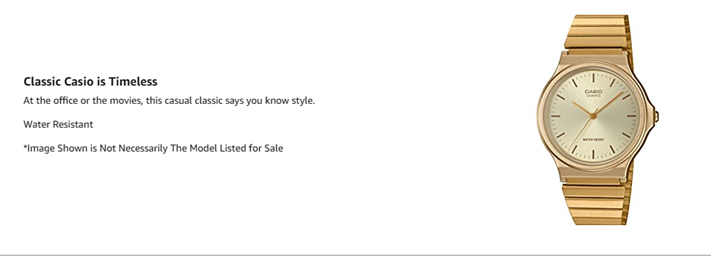 The basic black-and-gold design of the Casio Men's Analog Watch makes it a simple, versatile timepiece great for everyday wear. The watch is constructed with a resin case, a black stationary resin bezel, and a comfortable black rubber bracelet with an adjustable buckle clasp. A durable mineral window protects the black dial face, which cleanly features gold-tone hour indexes, gold-tone minute markers, and complementary watch hands.