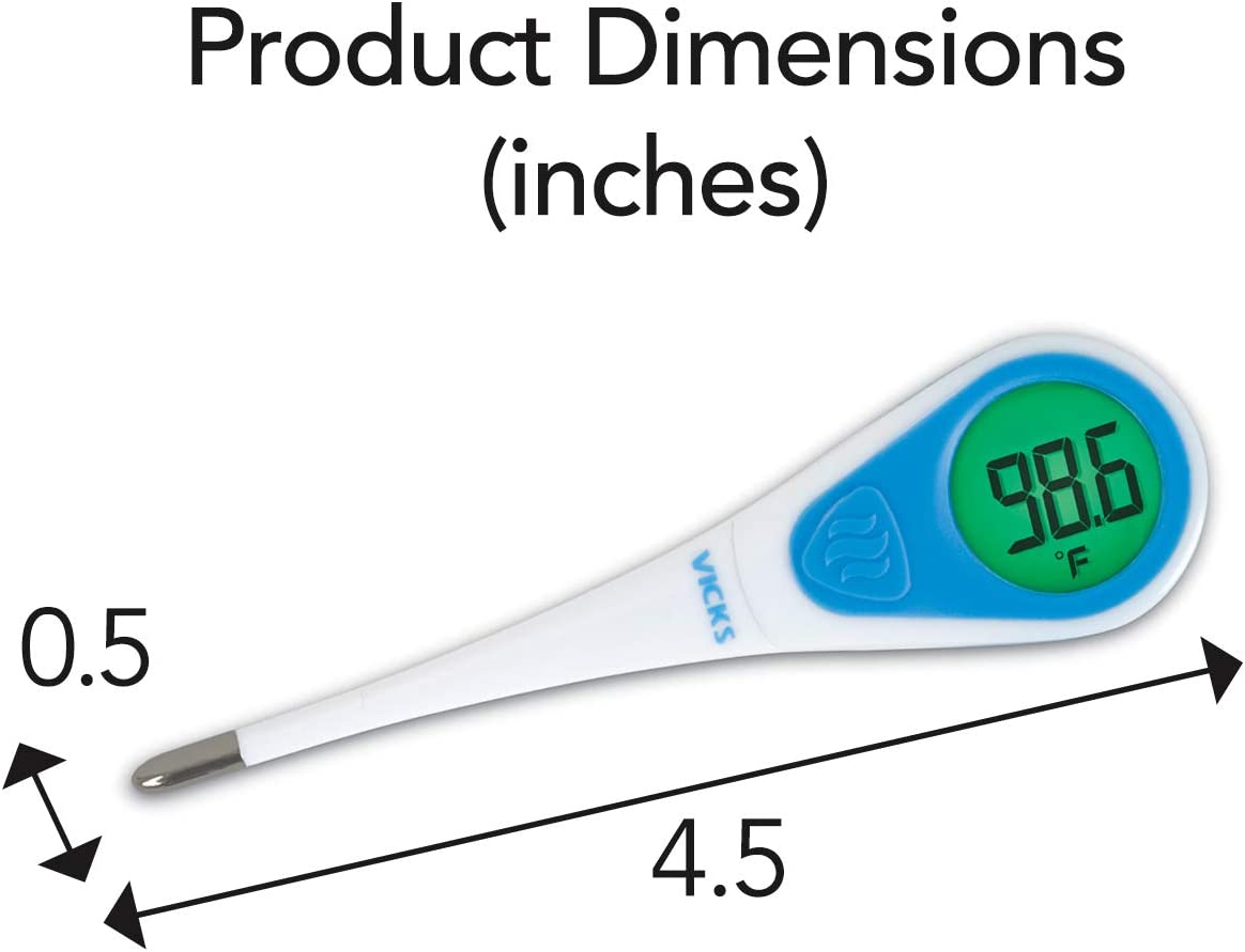 - QUICK, ACCURATE RESULTS – This Vicks Thermometer provides accurate, simple to understand the readings in only 8 seconds, so you can get results quickly, when you need them most. It also has a memory feature that recalls and displays last temperature taken