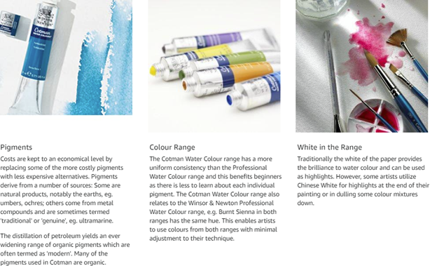 Winsor & Newton Cotman Water Colors are a range of water colors that are made to our normal high quality standards but costs are kept to an economical level by replacing some of the more costly pigments with less expensive alternatives. Each color has good transparency, excellent tinting strength and good working properties. This exclusive compact Field Box has been designed to be light-weight and fit snugly into the pocket while providing everything required for successful outdoor water color painting. Constructed in durable blue plastic, the Field Box includes: 12 Cotman Water Color half pans, a pocket brush, artists' sponge, 3 mixing areas, 35ml capacity water bottle, clip-on water container and an instructional leaflet. Colors included: Cadmium Red Pale Hue, Cadmium Yellow Hue, Cadmium Yellow Pale Hue, Alizarin Crimson Hue, Ultramarine, Cobalt Blue Hue, Sap Green, Viridian Hue, Burnt Umber, Yellow Ochre, Burnt Sienna and Chinese White.