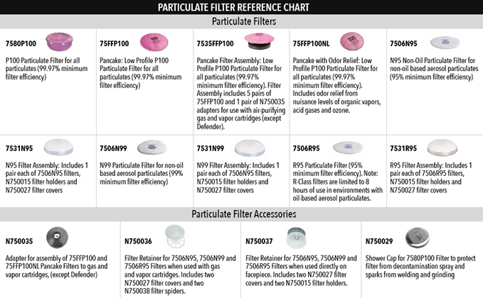 | Special Features | Cartridges and filters sold separately, Safety Products, Can be adapted to PAPR or Supplied Air| Also available with a welding attachment. | Speech diaphragm is standard| Dual flange sealing area| Five strap head harness| Nose cup is standard| Chin cup helps to position the facepiece properly| Latex free. | Lens offers 200o field of vision, plus downward view| Polycarbonate lens meets ANSI high impact requirements |