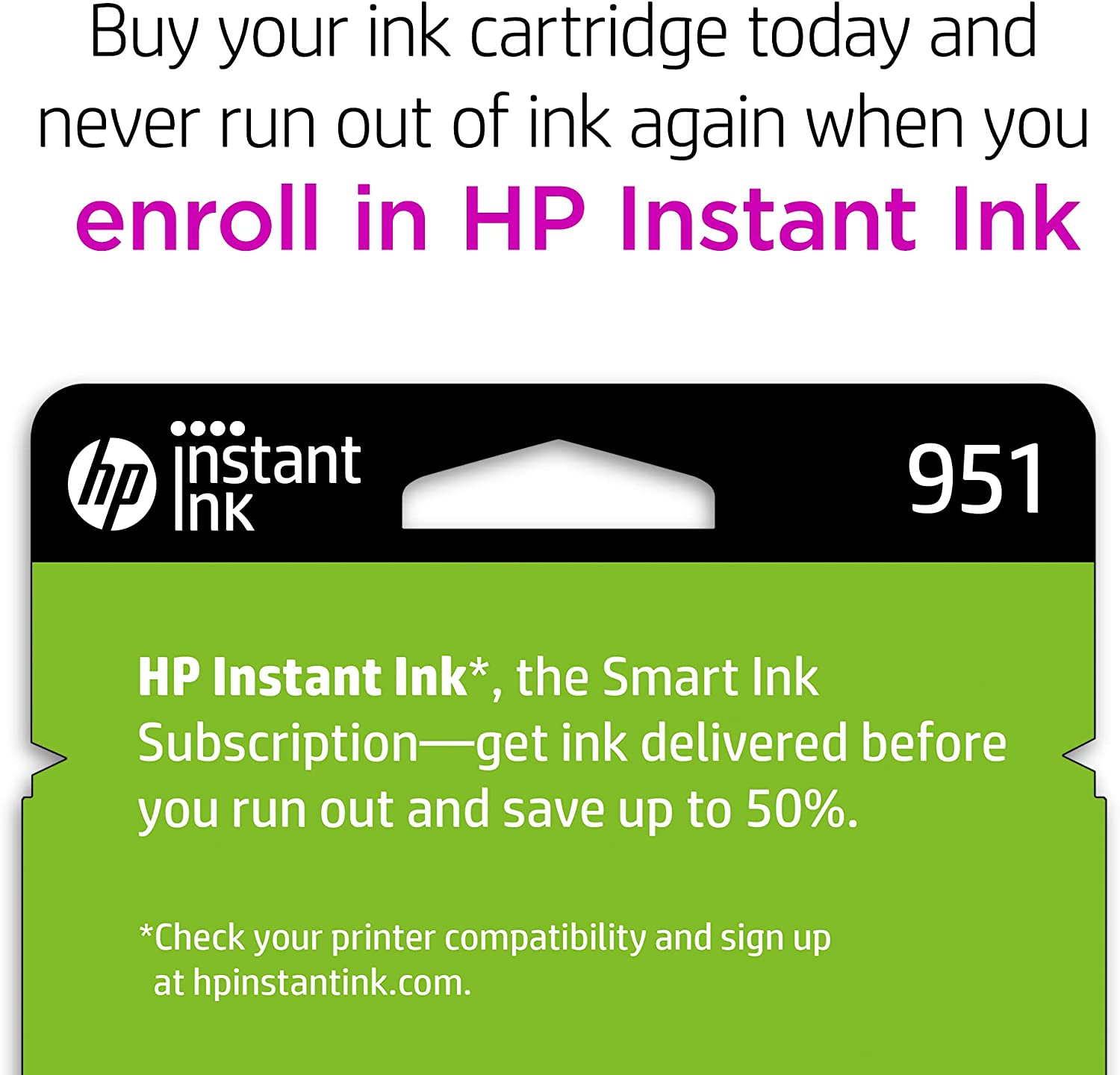 HP 951 Cyan, Magenta, Yellow Ink Cartridge (CN050AN, CN051AN, CN052AN). HP 950 & 951 ink cartridges work with: HP Officejet Pro 251dw 276dw 8610 8600 8620 8100 8630 8625 8615. HP 951 ink cartridge yield (approx.) per cartridge: 700 pages cyan, 700 pages magenta, 700 pages yellow. Get up to 2x the pages with Original HP 950XL 951XL high yield ink cartridges compared to standard 950 & 951 cartridges. Original HP ink cartridges: genuine ink for your HP printer. Ensure that your printing is right the first time and every time with HP printer ink: 951 ink. CHOOSE AN INK REPLENISHMENT SERVICE - Let your printer track usage and have ink delivered before you run out. Either reorder HP Genuine ink cartridges only when you need them through Amazon Dash Replenishment, or save up to 50% by paying for pages printed through HP Instant Ink. What’s in the box: HP 951 ink cartridges (1 Cyan, 1 Magenta, 1 Yellow). Colors: Cyan, Magenta, Yellow.