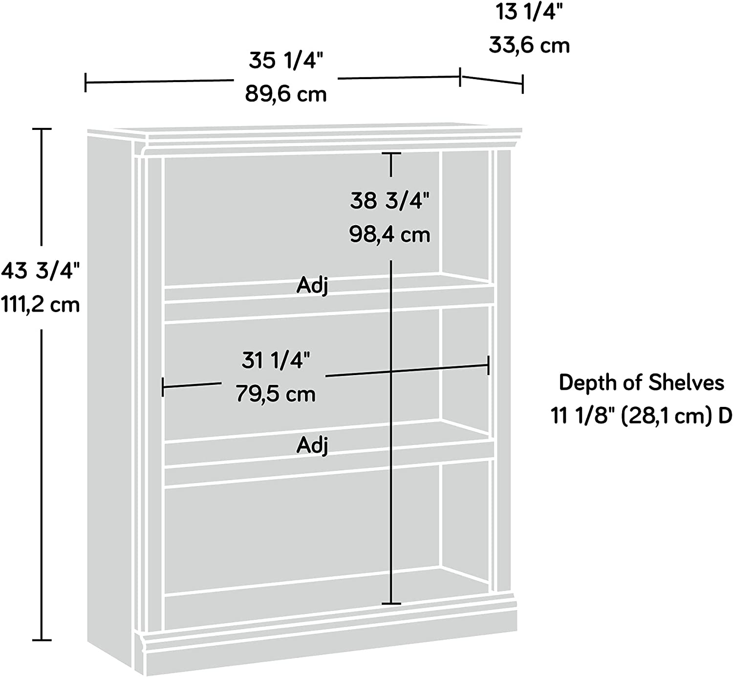 Assembled dimensions: L: 35. 28" x W: 13. 23" x H: 43. 78"