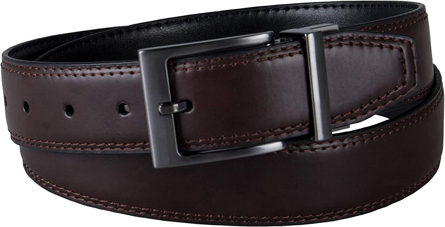• CASUAL TIMELESS DESIGN: Adding a touch of style to your jeans or khakis is now a no-brainer. The reversible belt strap features double row stitch on edges, a matte finish harness buckle and a pointed tip that finish off the classic silhouette of the belt.
