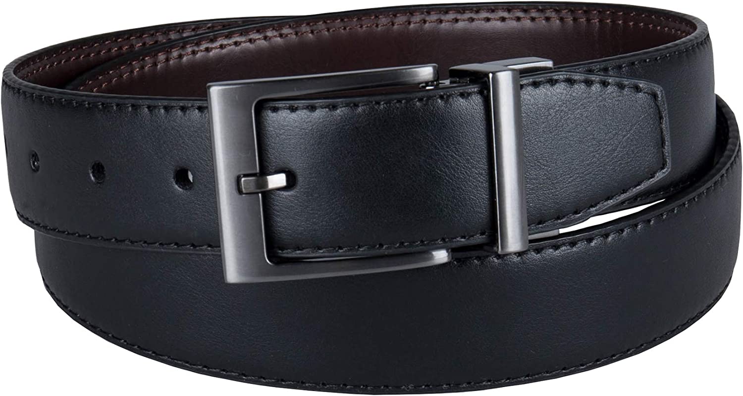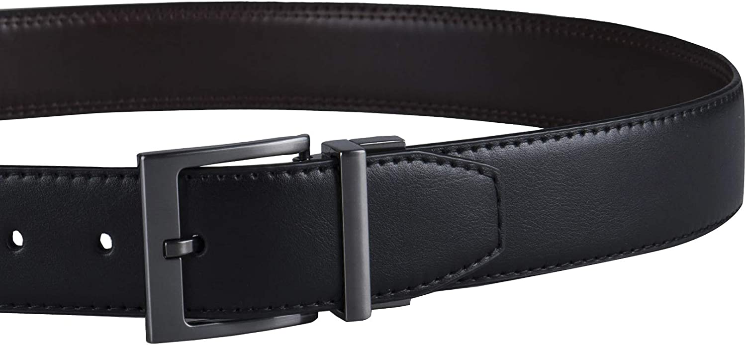 • REVERSIBLE: The reversible design has a rotative square buckle that you can reverse with ease. Simply pull up the buckle at the hinge while rotating it and put it back in place to use your belt one way or another.