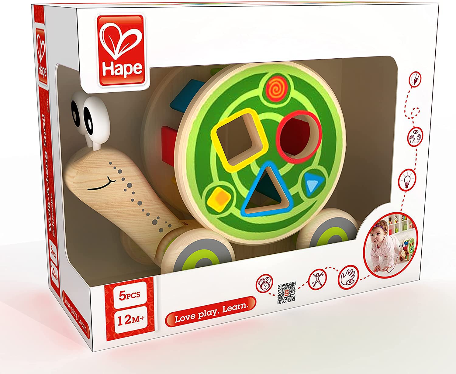 Hape's Walk-A-Long Snail Toddler Wooden Pull Toy is the perfect companion for little ones just beginning to learn about sorting colors and shapes.