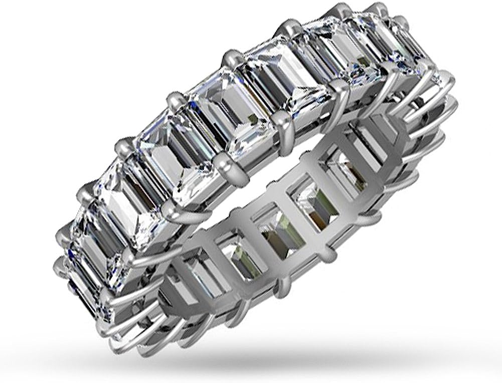Madina Jewelry 5.00 ct Emerald Cut Diamond Eternity Wedding Band Ring in 14 kt White Gold