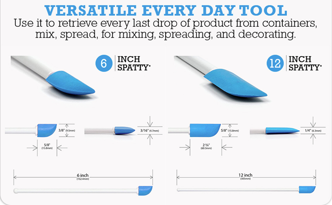 • MONEY SAVING MINI SPATULA – The Spatty and Spatty Daddy Blue 6 and 12 Inch Set are tiny kitchen spatulas that scrape empty up to 25% more grocery food product for you to mix, spread and decorate