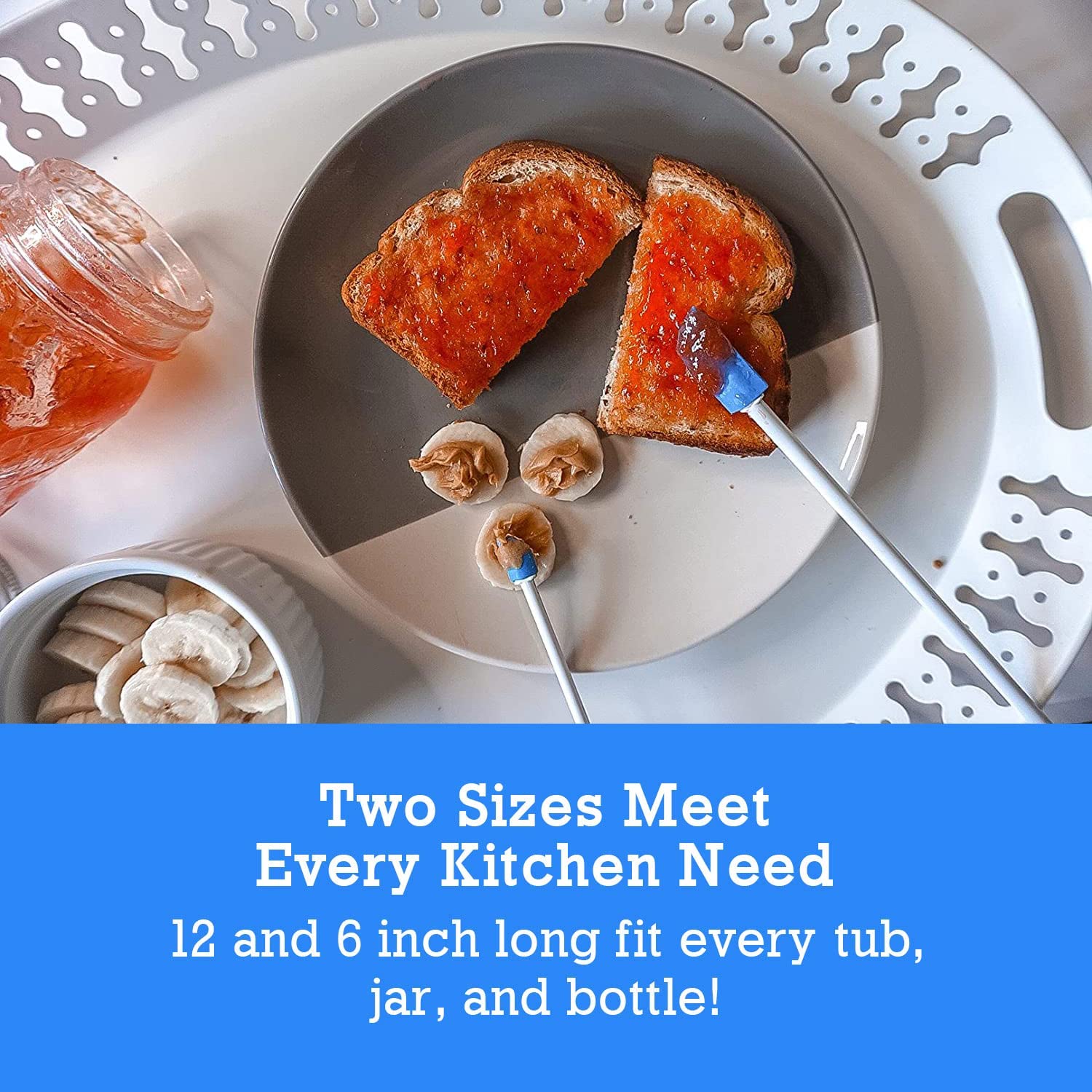 Spatty Daddy Kitchen Spatula Set (6 and 12 Inch Blue) Shark Tank Mom Made to Scrape Last Drop From Jars, Ketchup, Icing, Peanut Butter, Spreading or Mixing Gifts for Cooks, Grandma, Stocking Stuffers