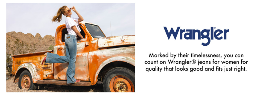 Since 1947, Wrangler has maintained a relentless commitment to quality apparel built to fit your life. Wrangler fills your closet with classic snap shirts, tops and tees, jackets and denim that keep you comfortable in true western style. In and out of the saddle, the women’s western line is functional, fashionable and ready to hit the town whenever you are. This is Wrangler, made for you.