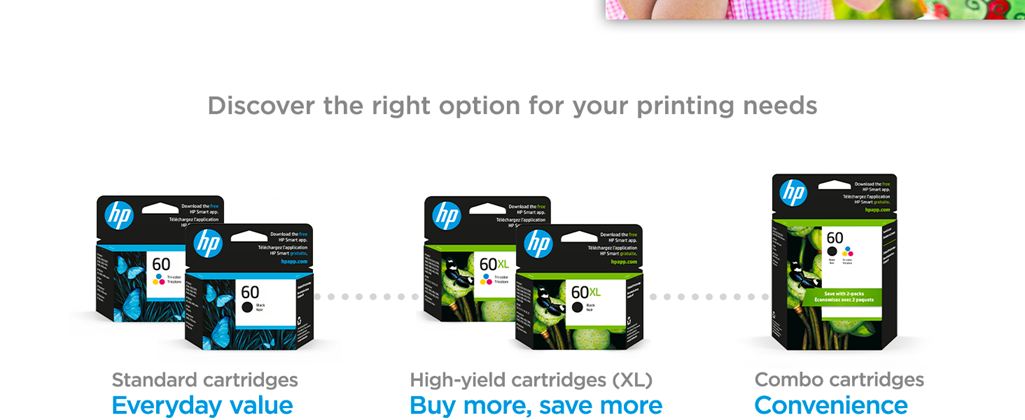 Expect professional-quality documents when you use Original HP printer ink and toner cartridges. Dependable performance, consistent page yields, and standout results are the norm – something the competition can’t match. With Original HP Ink and Toner cartridges, you can also avoid costly reprints and help ensure the flawless performance you expect from your HP printer.
