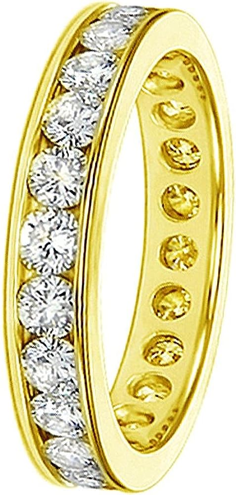 VIP JEWELRY ART 14K Yellow Gold Round Diamond Eternity Anniversary Wedding Band in Channel Setting (1,65-2.25 CT TDW)