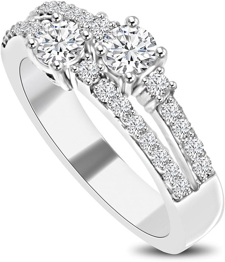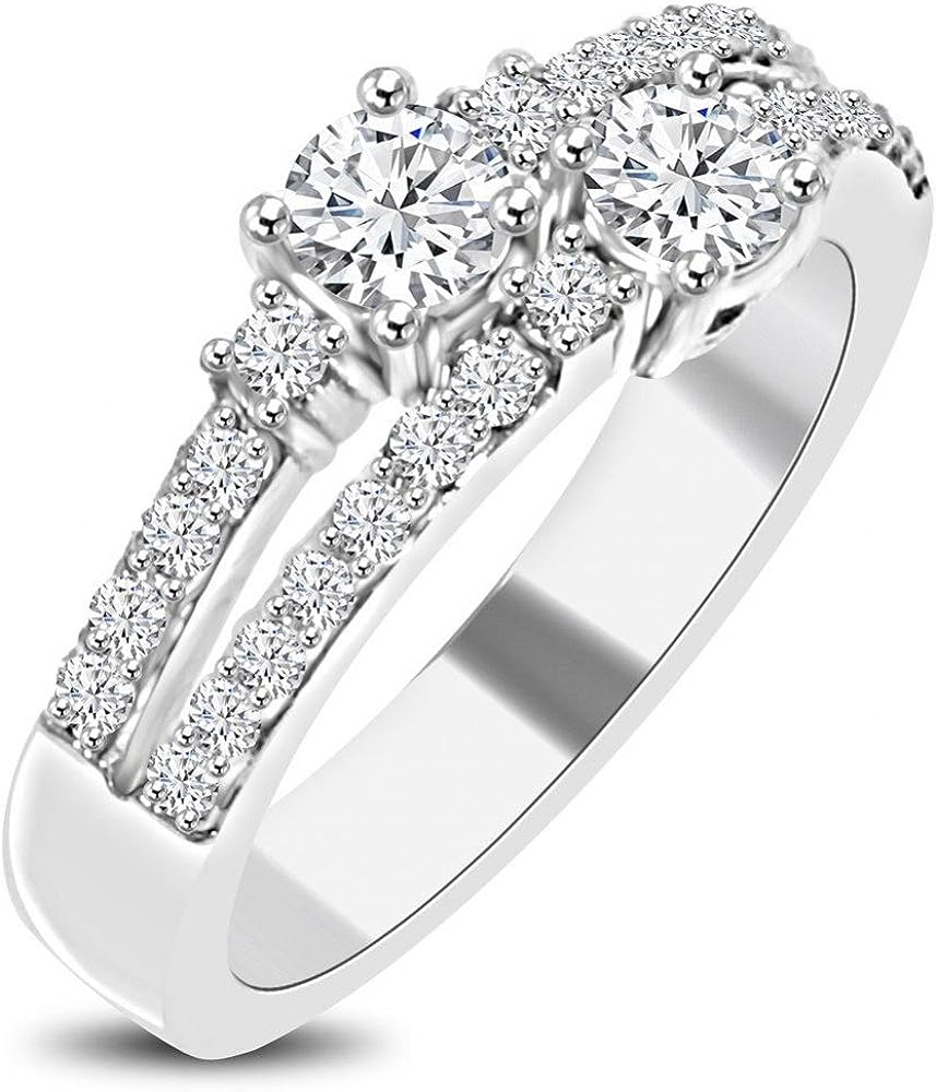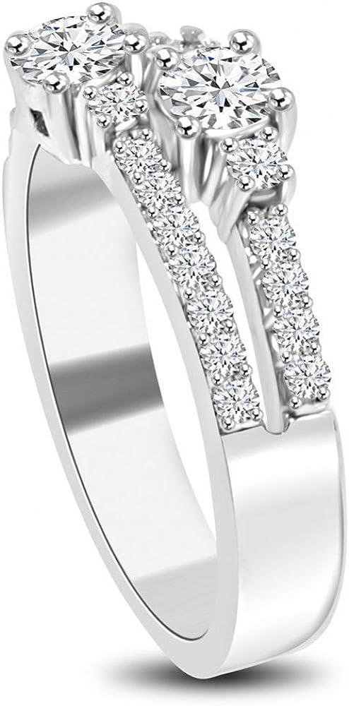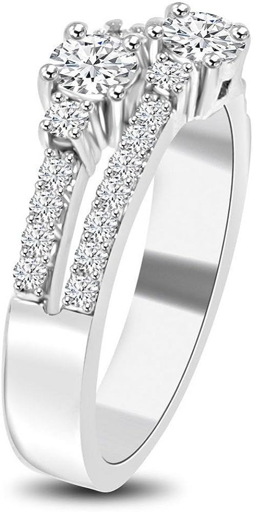 Madina Jewelry 2.00 ct Ladies Two Row Round Cut Diamond Engagement Ring in 14 kt White Gold