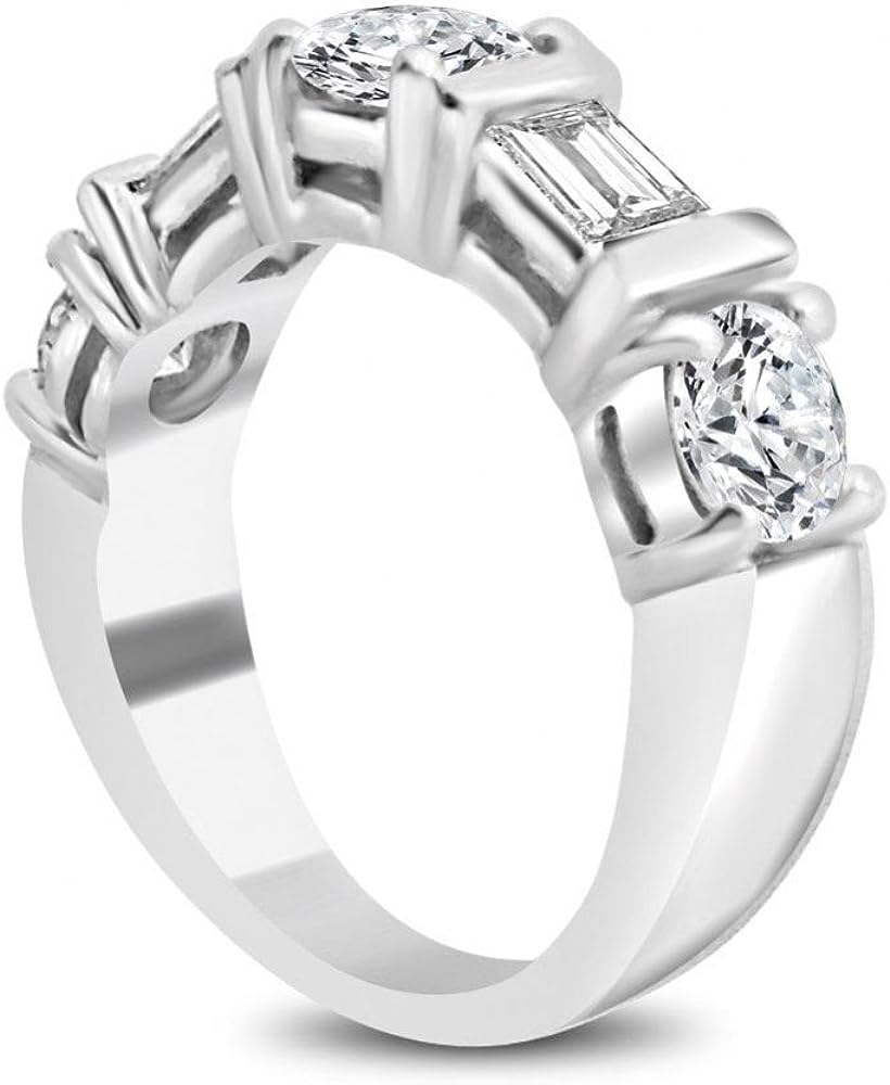 Madina Jewelry 1.54 ct Round and Baguette Cut Diamond Wedding Band Ring in 14 kt White Gold
