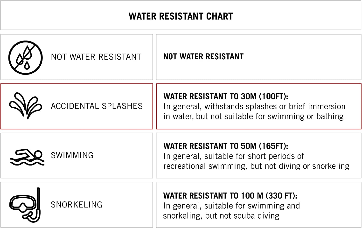 | Water resistant depth | 100 Feet |
