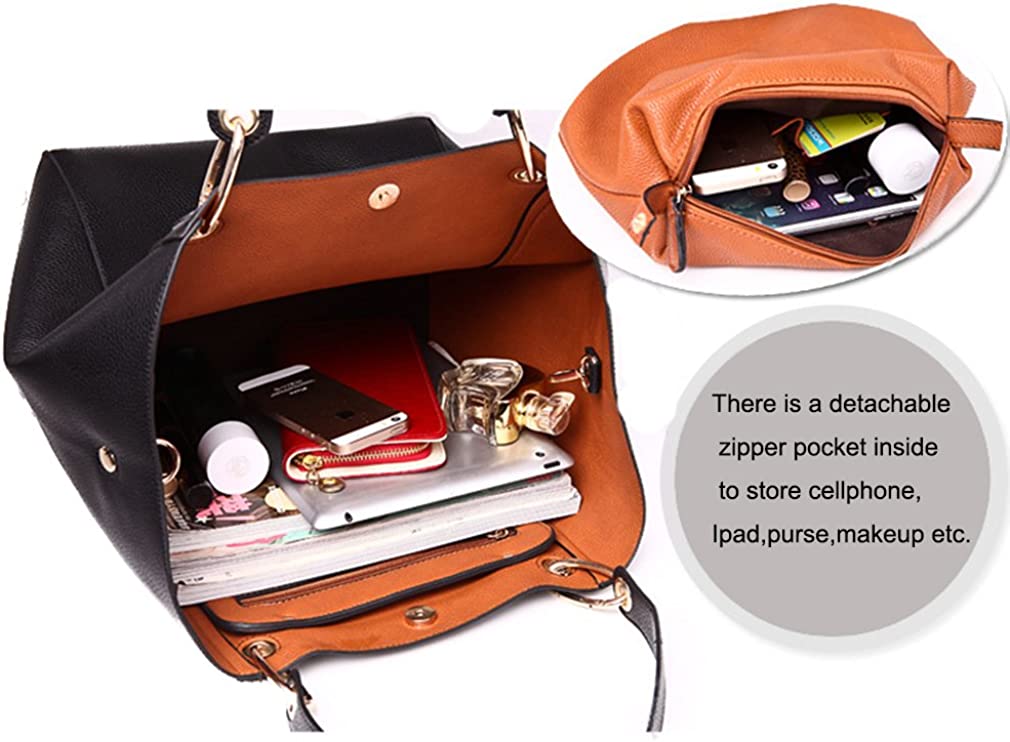 ?【 DETAILS】? The golden accessroies can well highlight its personality design,which can be used in any occasions.The magnetic buckle with strong suction force are used to well close the bag. There is a detachable zipper pocket inside to store cellphone,purse,makeup etc.The fixed small side zipper pocket can be used to put some small items,such as coins,keys,lipstick etc.The detachable two hand straps along with one shoulder strp are very convenient to use.