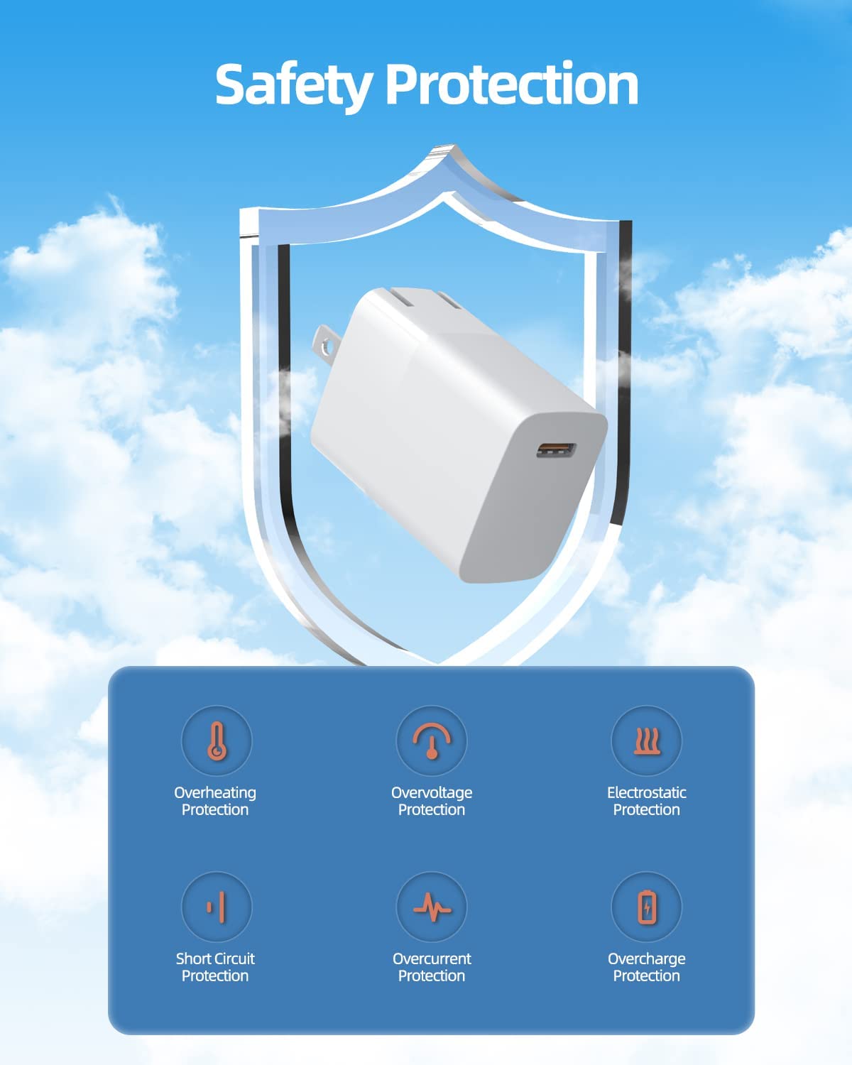 -With a 1.8M USB-C charging cable that supports a PD fast-charging model with a maximum output of up to 20W, the USB-C port with Power Delivery 3.0 compatible devices enables faster charging in a short time.