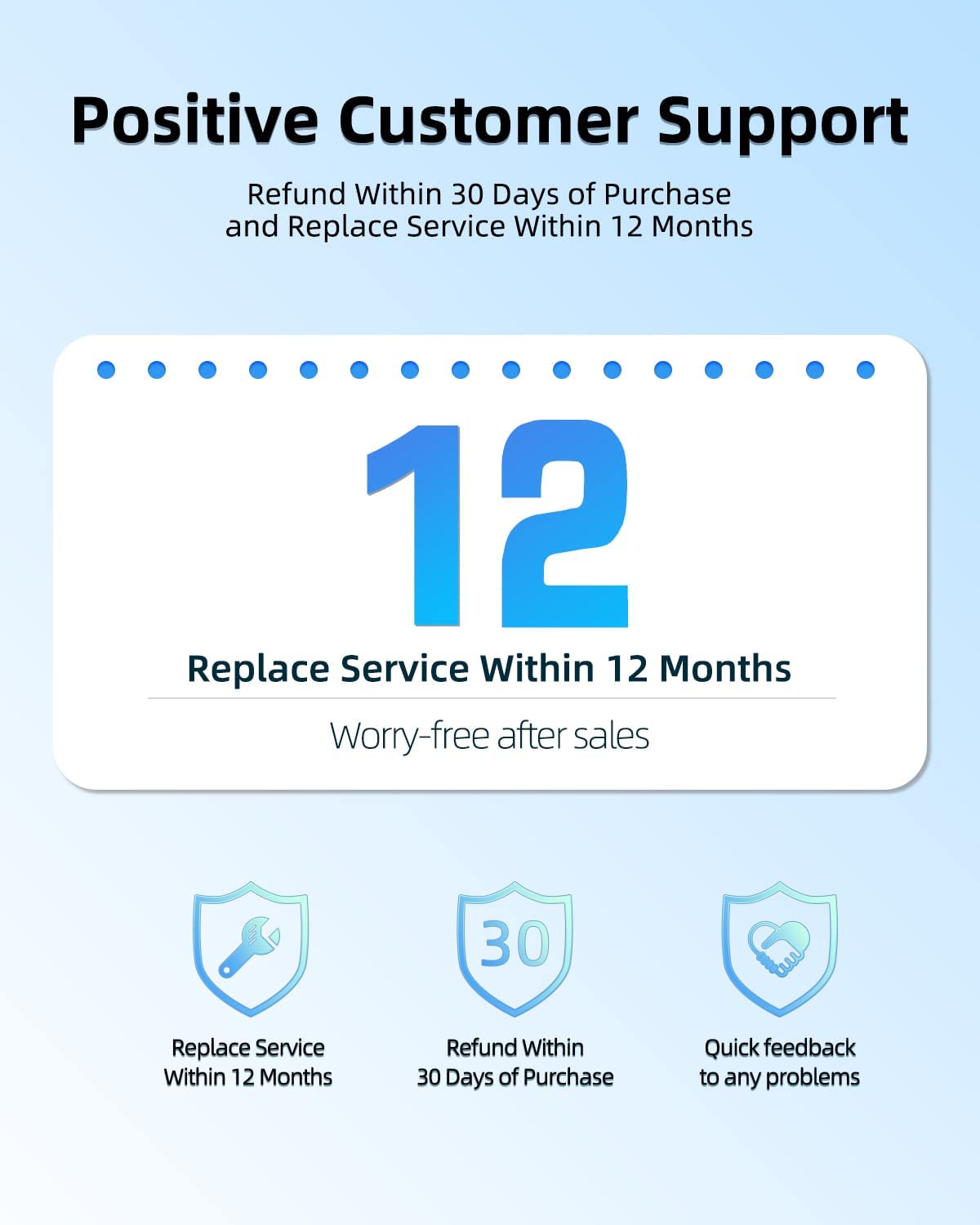 • ?️Warranty: This product is eligible for replacement or refund within 30 days, and the manufacturer provides an additional 12 Months Warranty.