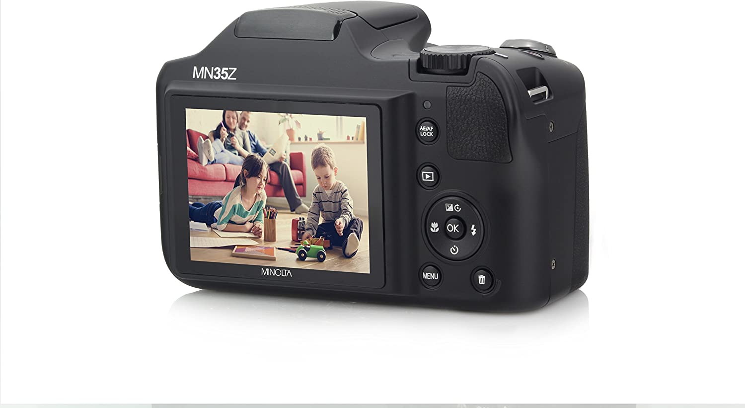 Minolta 20 Mega Pixels High Wi-Fi Digital Camera with 35x Optical Zoom, 1080p HD Video & 3" LCD, Black (MN35Z-BK)
