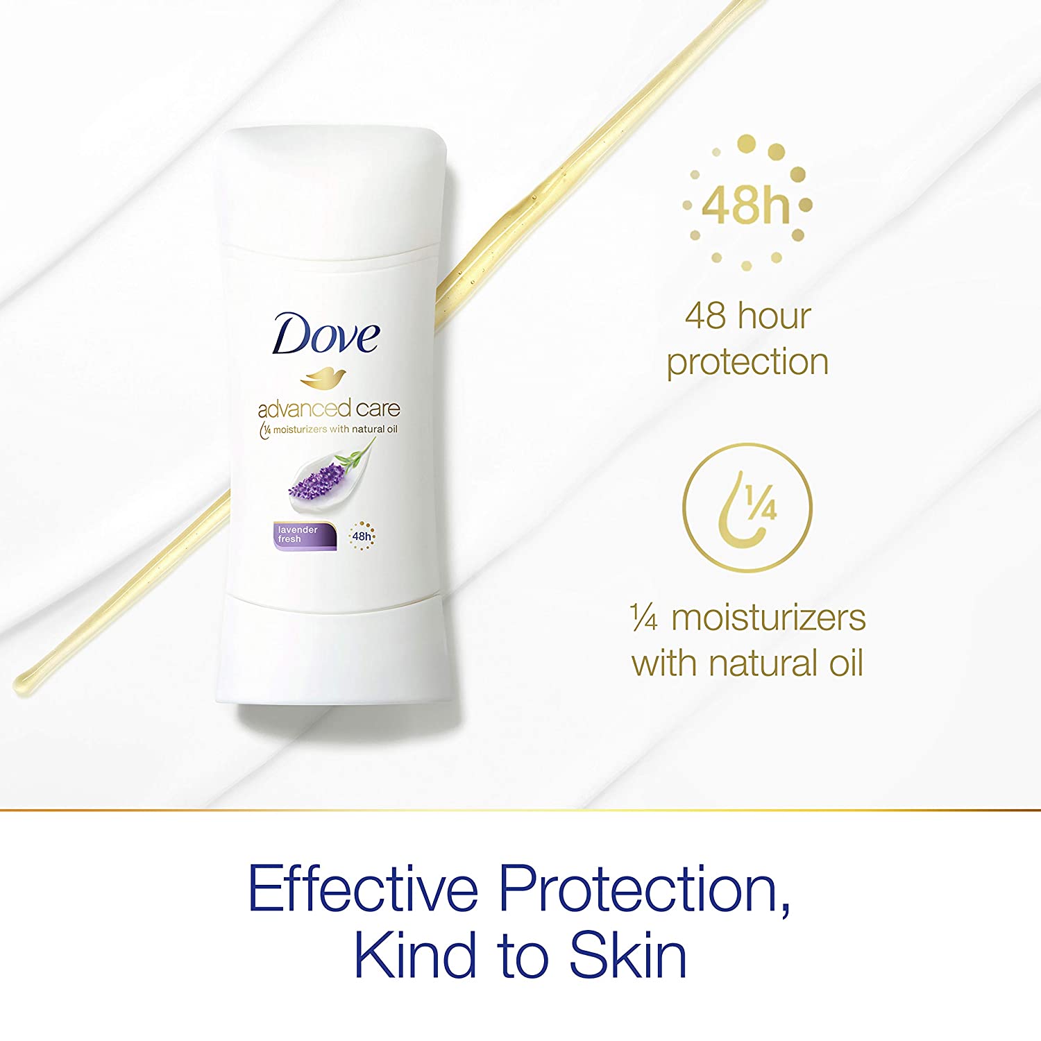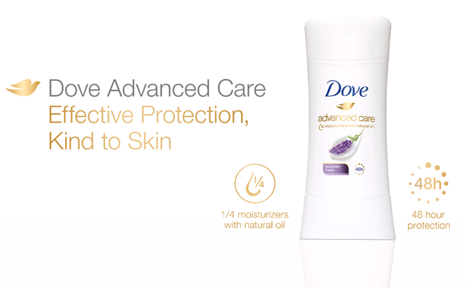 • Effective protection and kind to skin; Dove advanced care lavender fresh antiperspirant deodorant stick keeps your underarms dry and odor-free for up to 48 hours while being kind to your skin