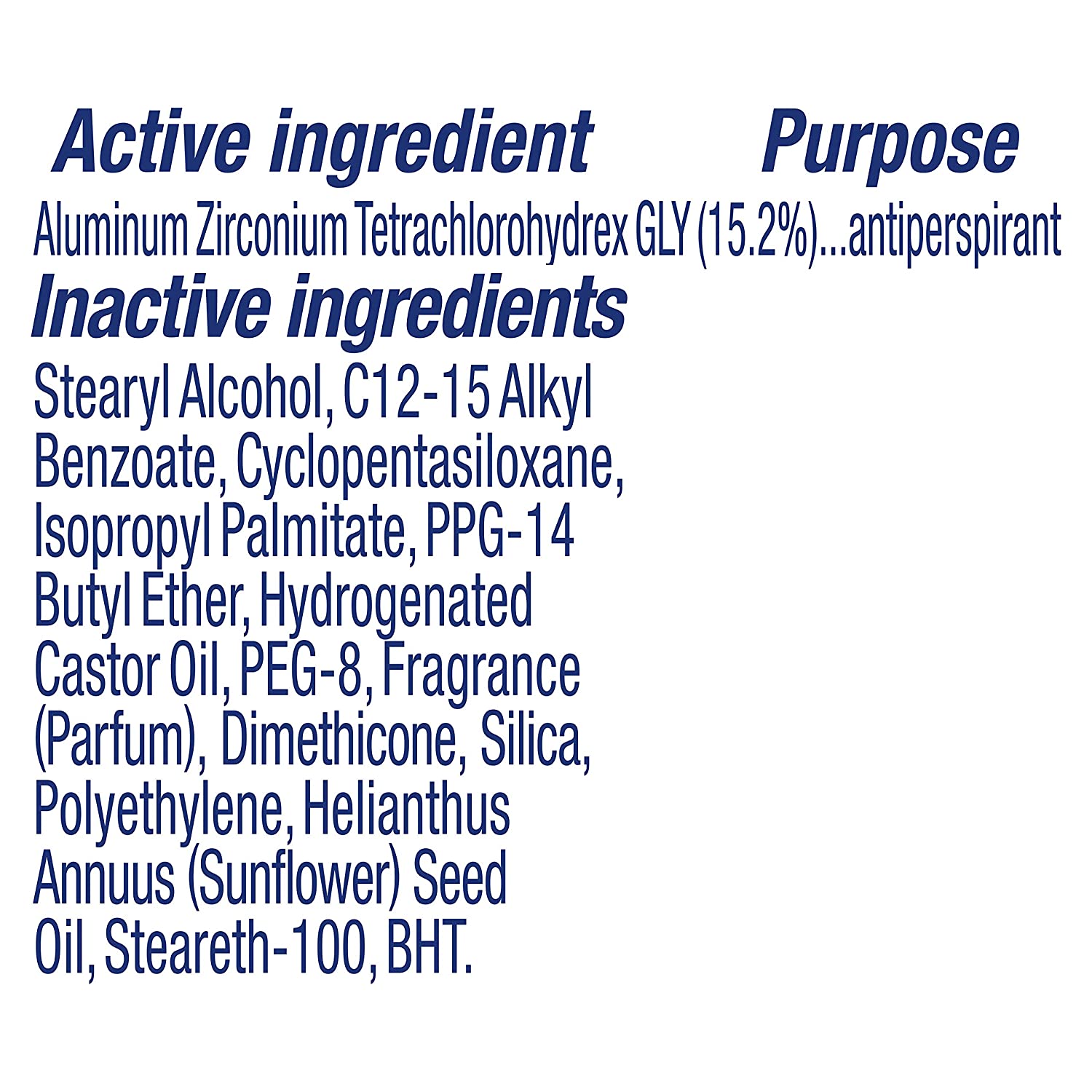 • Alcohol-free formula; the 0 percent alcohol (ethanol) formula of our antiperspirant stick helps skin recover from underarm irritation that shaving can cause