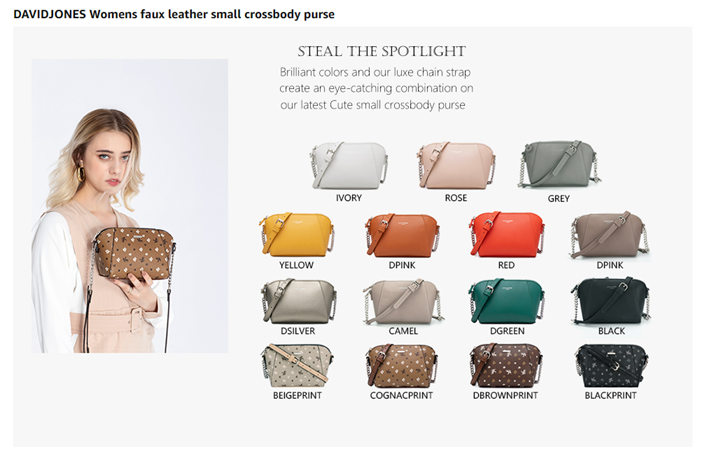 BRAND:DAVIDJONES purses for women designed in French since 1987.We are distributing Great stylish and versatile handbags for women in more than 100 countries .Excellent craftsmanship and refined premium quality leather like PU women purse.Decent quality women handbag with affordable price.