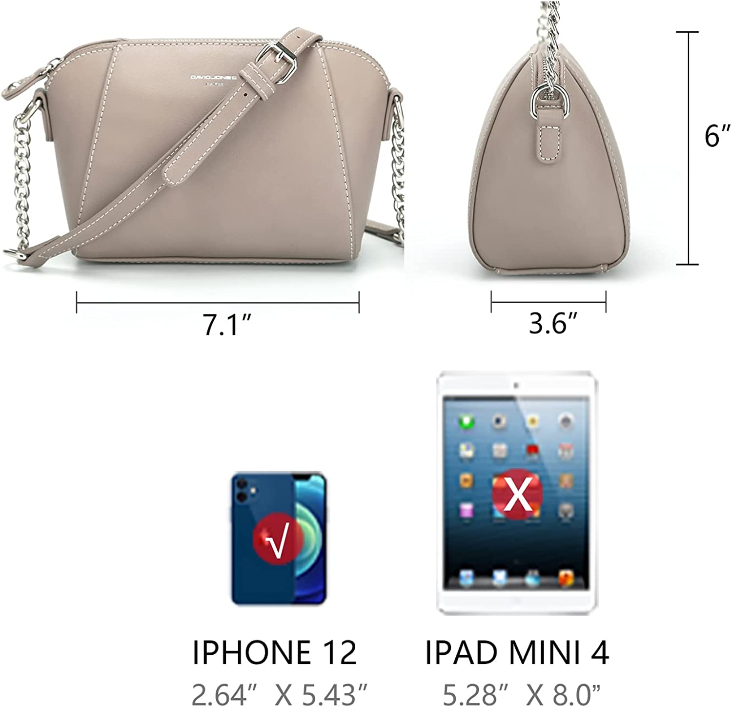 CONSTRUCTION:Zipper closure for the main compartment;1 internal ZIP pocket;1 internal slip pockets for small essentials;Adjustable Long Strap with chains decorated.Elegant imbossed LOGO NO stratching your dressing. DAVIDJONES woven dust bag for free.
