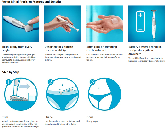 • Bikini ready skin safe and easy - from every angle - with Venus Bikini Precision