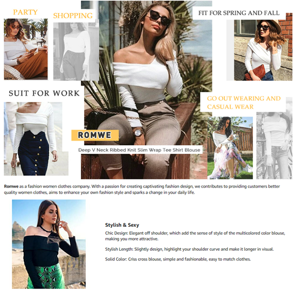 Romwe Women's Casual Cross Off Shoulder Deep V Neck Ribbed Knit Slim Wrap Tee Shirt Blouse
