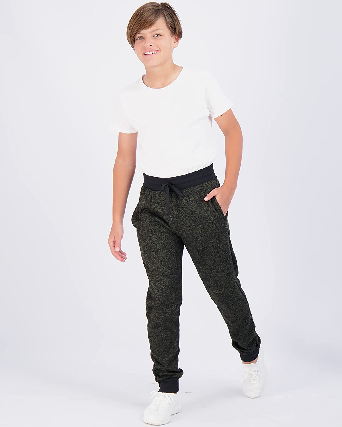 Real Essentials 3 Pack: Boys Youth Active Athletic Soft Fleece Jogger Sweatpants