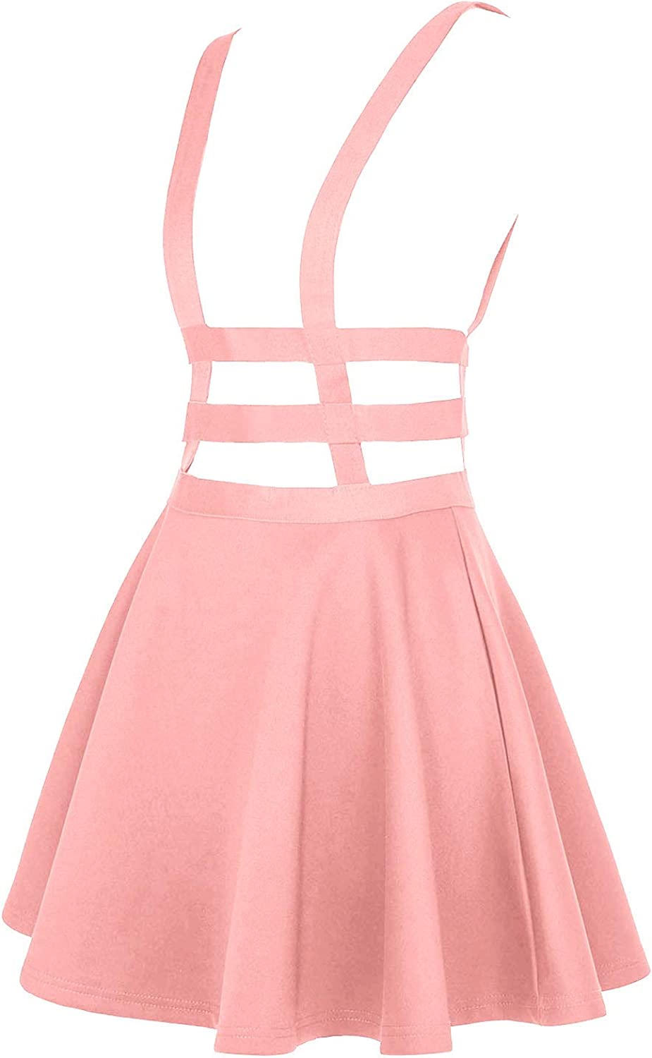 EXCHIC Women's Braces Skirt Pleated A-Line Suspender Mini Skirt