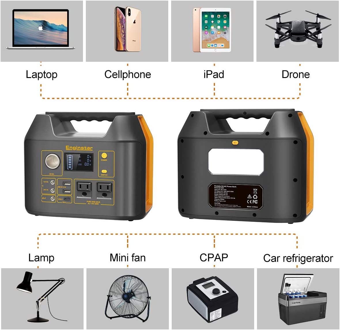 P.when("ReplacementPartsBulletLoader").execute(function(module){ module.initializeDPX(); }) PORTABLE BUT POWERFUL: With ETL Certification- With the portable size of 9 x 5.5 x 7.5 inches, weights only 6.5 pounds, but armed with 296wh capacity and 300W output, EnginStar portable power station can provide enough juice to charge your phones, laptop, camera, cpap, drone, etc. Designed with 8 output ports can charge several devices at the same time, which make it a perfect emergency power bank, outdoor and camping backup battery.