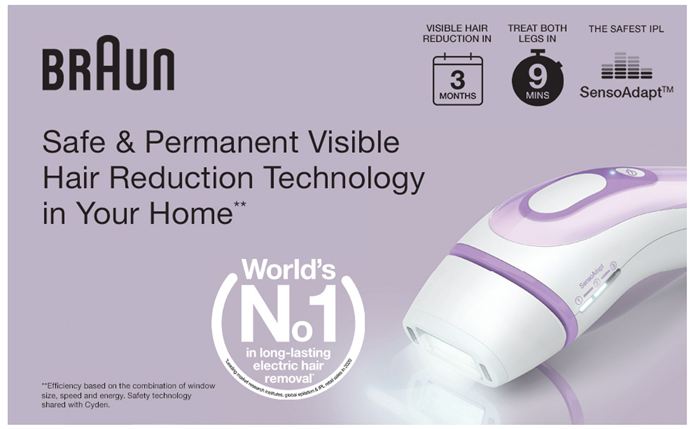 • Braun Latest Generation IPL. Long-lasting Hair reduction in just 3 months*.