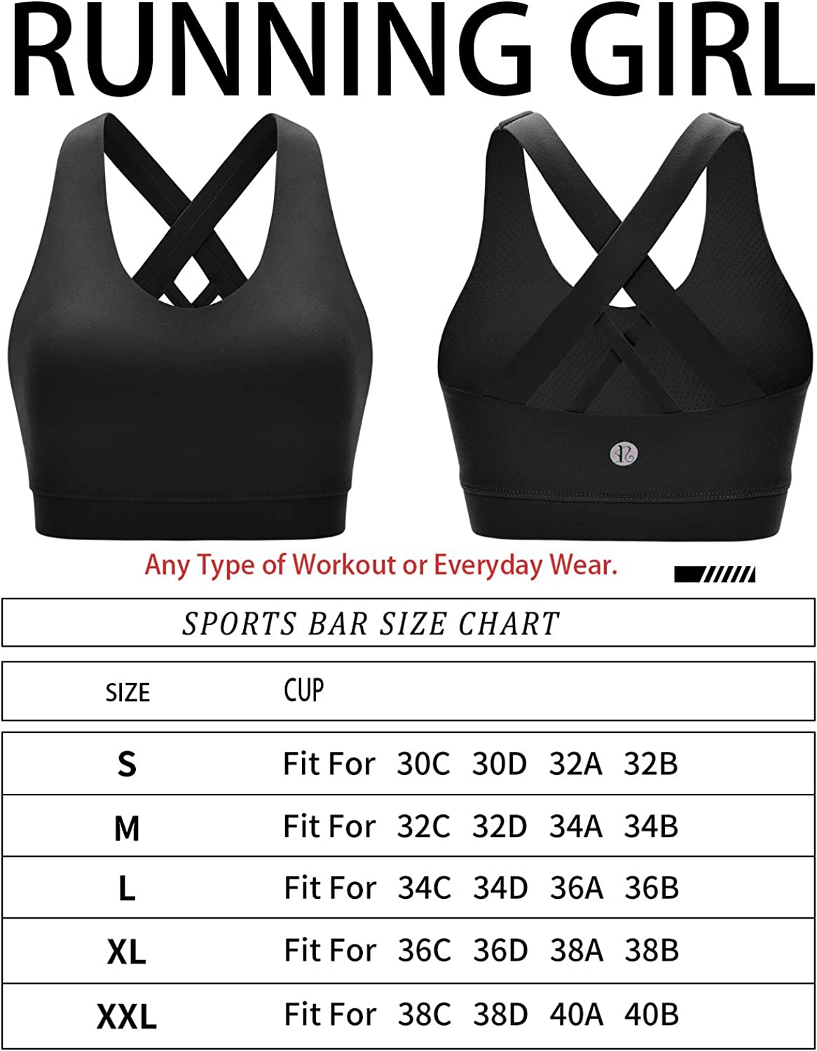 • VERSATILE SPORTS BRA: Perfect bra for yoga,exercise,fitness,any type of workout,or everyday use. RUNNING GIRL Yoga bra combine fashion, function and performance. This stylish sport bra is great for wearing under workout shirts as well as non-workout wear, such as tank tops and light clothing.