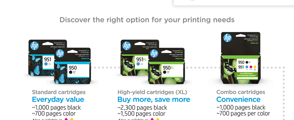 • Original HP Ink is engineered to work with HP printers to provide consistent quality, reliability and value
