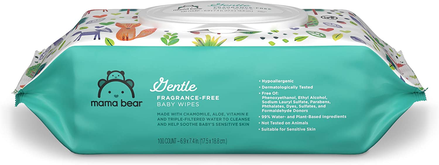 Amazon Brand - Mama Bear Gentle Fragrance-Free Baby Wipes, Hypoallergenic, 800 Count, 100 Count (Pack of 8)