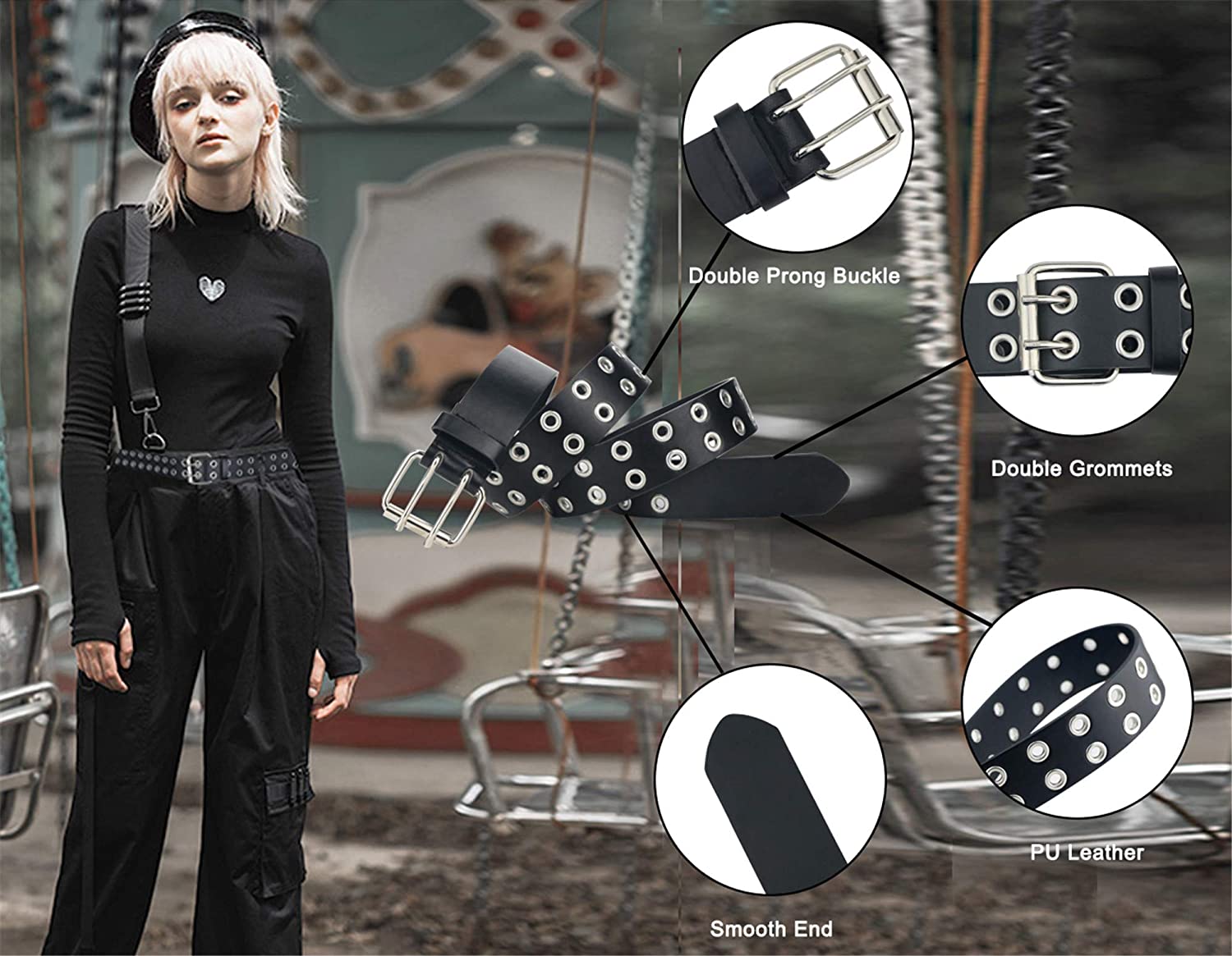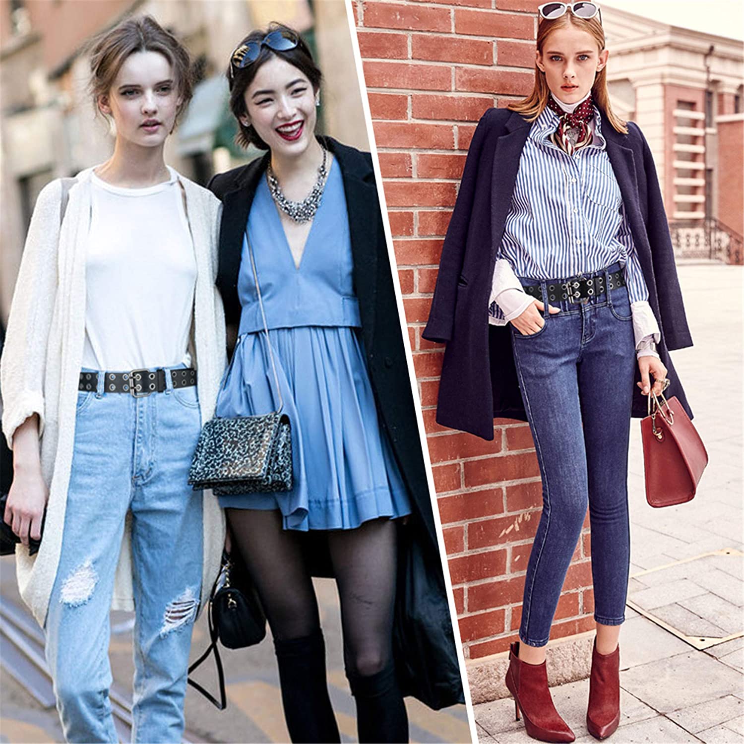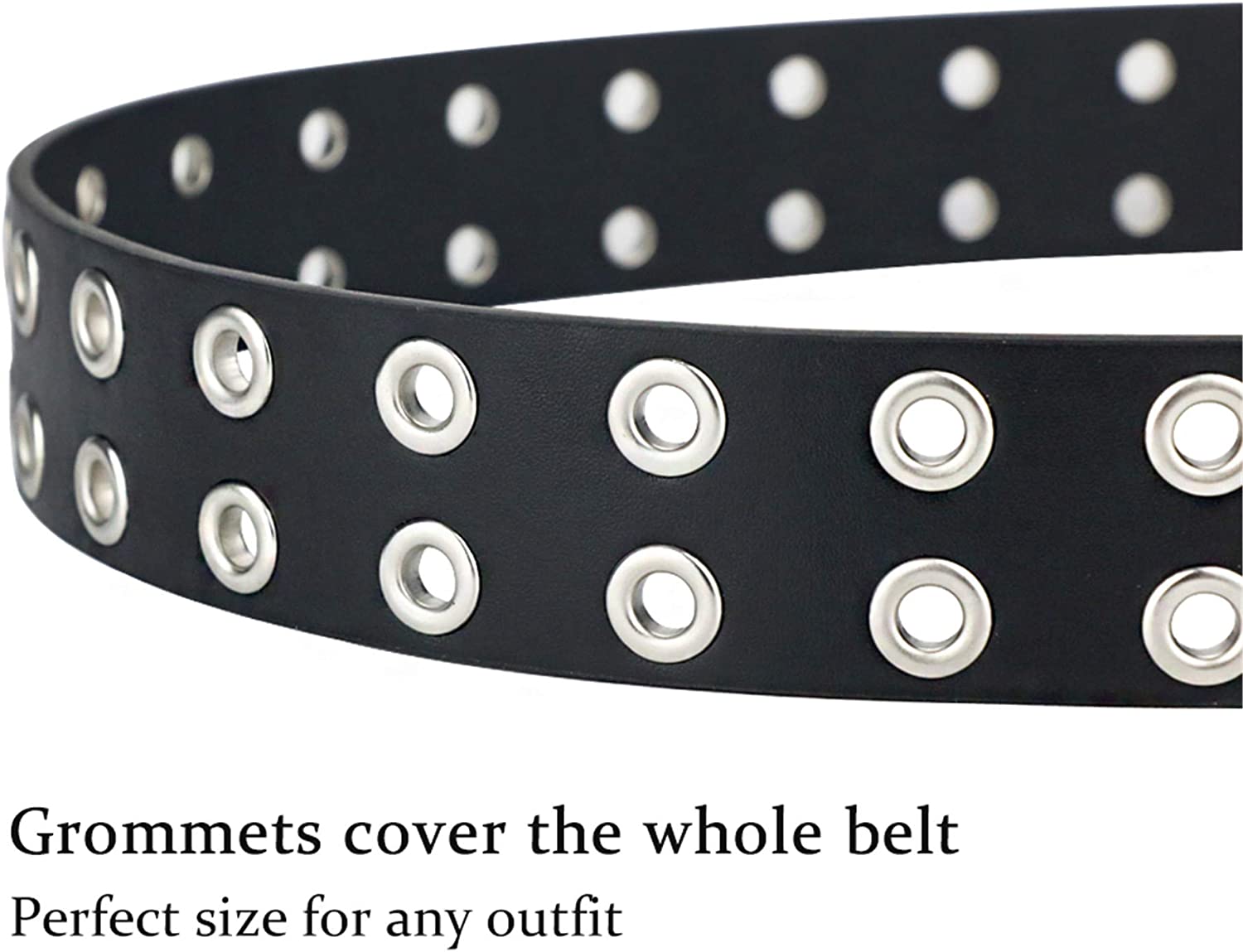 maikun Grommet Leather Belts for Women, Cute Black Belt, Studded Belt Punk Accessories