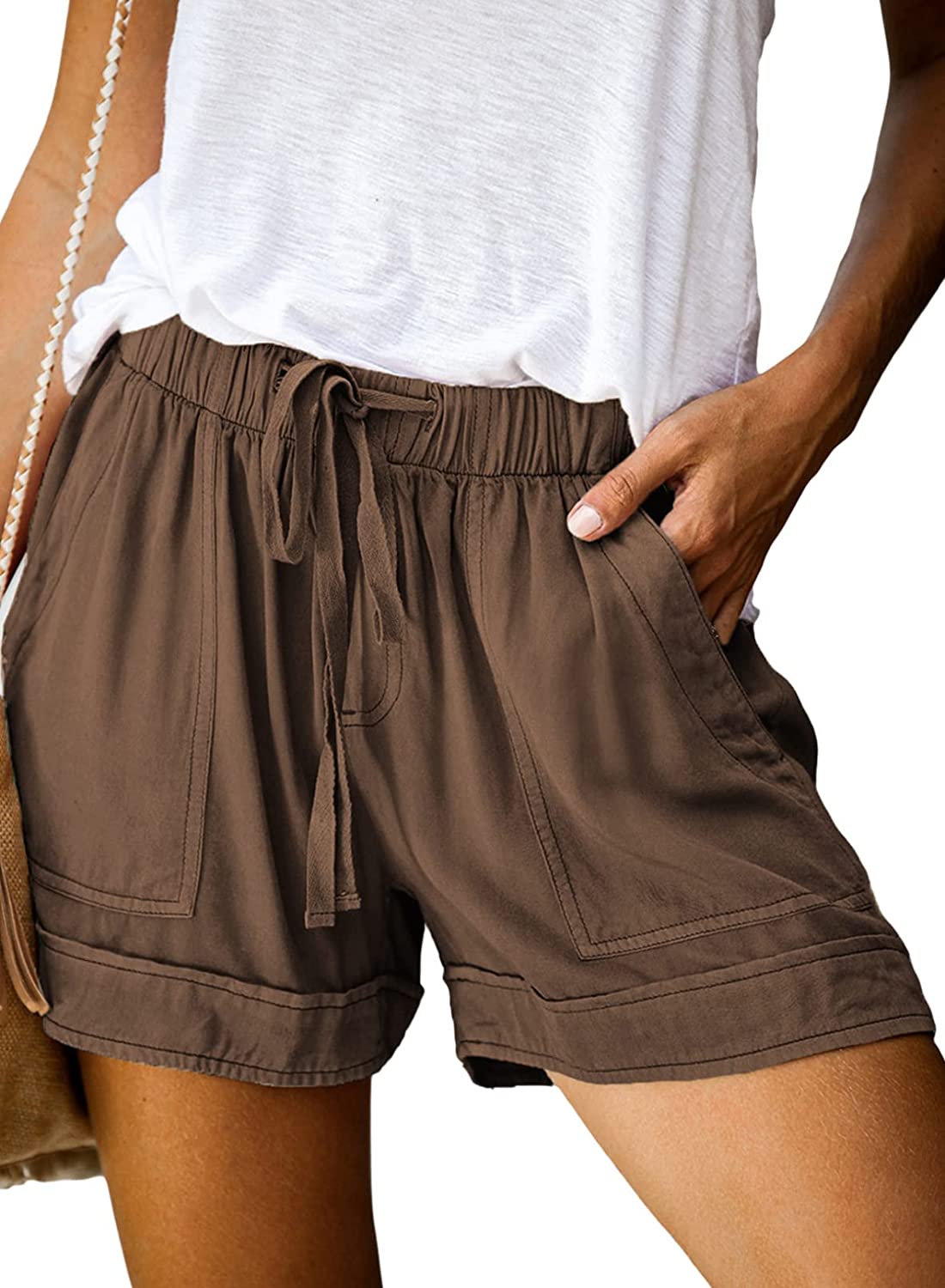 Dokotoo Womens Comfy Drawstring Casual Elastic Waist Pocketed Shorts