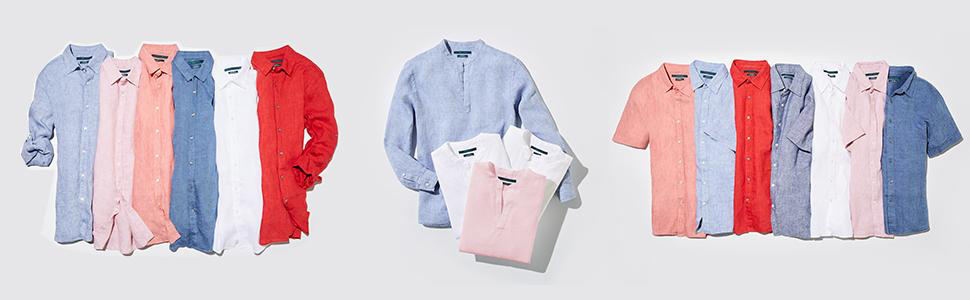 Point collar shirt, 100 percent linen, cuffed sleeve