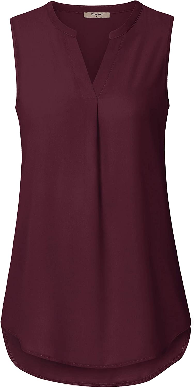 The fabric is made of 100% polyester.When wearing these sleeveless blouse for women, you will feel that the fabric is silky smooth and skin friendly.