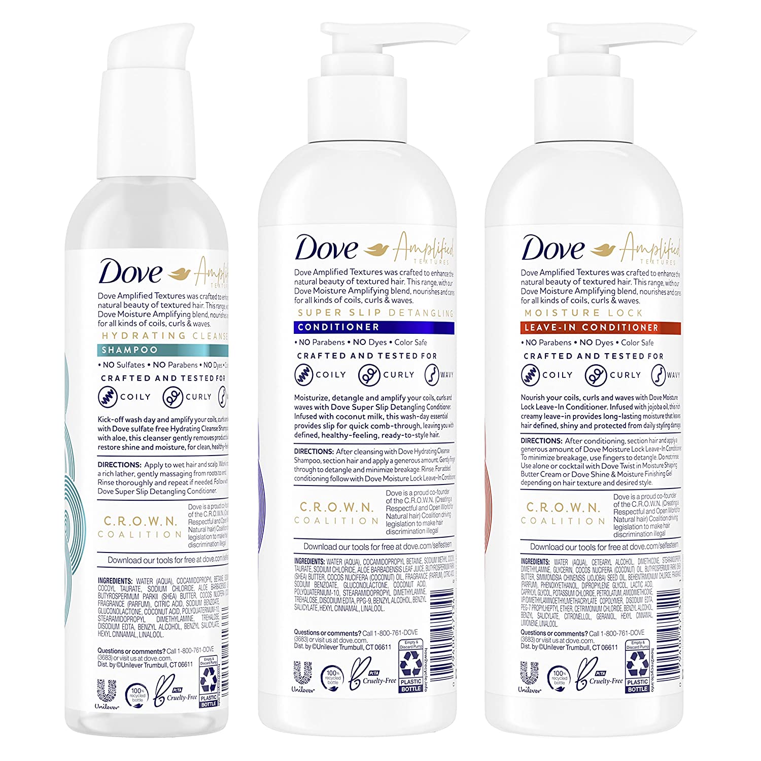 • HAIR PRODUCTS FOR NATURAL HAIR: The Dove Amplified Textures hair care system is designed to add moisture to hair with coils, curls and waves