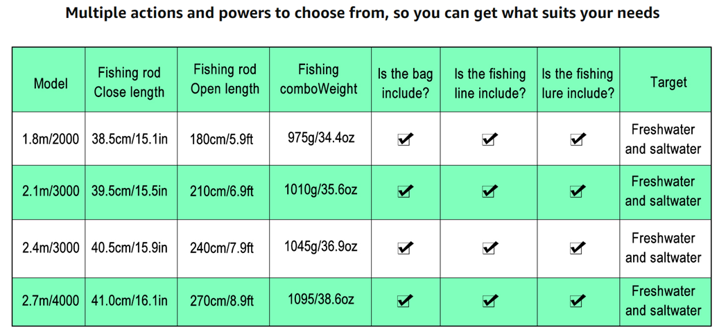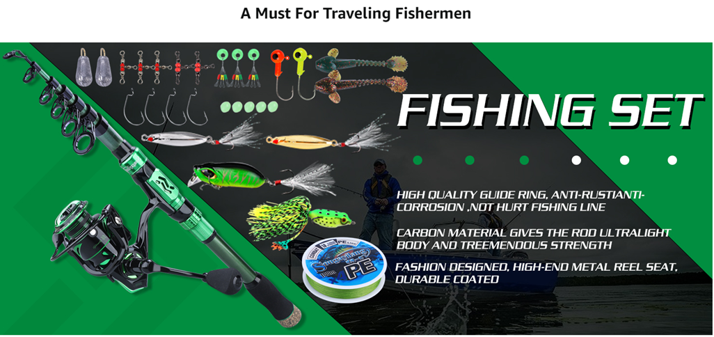 - Only one set of fishing gear is needed for fishing.Full Kit with Carrier Bag - 1 Fishing Rod + 1 Fishing Reel +100m Fishing Line + Various Fishing Lures + Fishing Hooks + Some Necessary Accessories + 1 Carrier Bag.