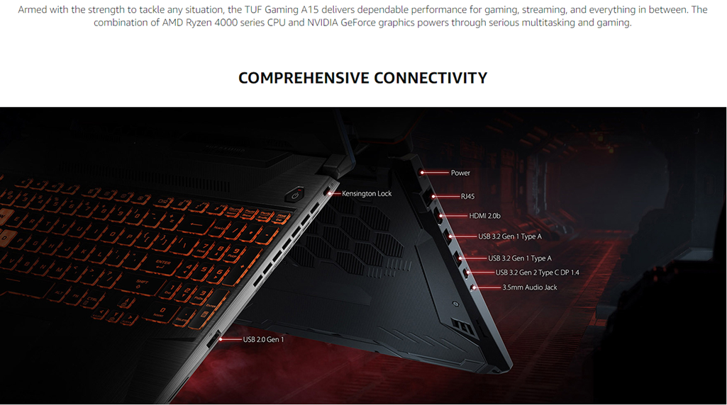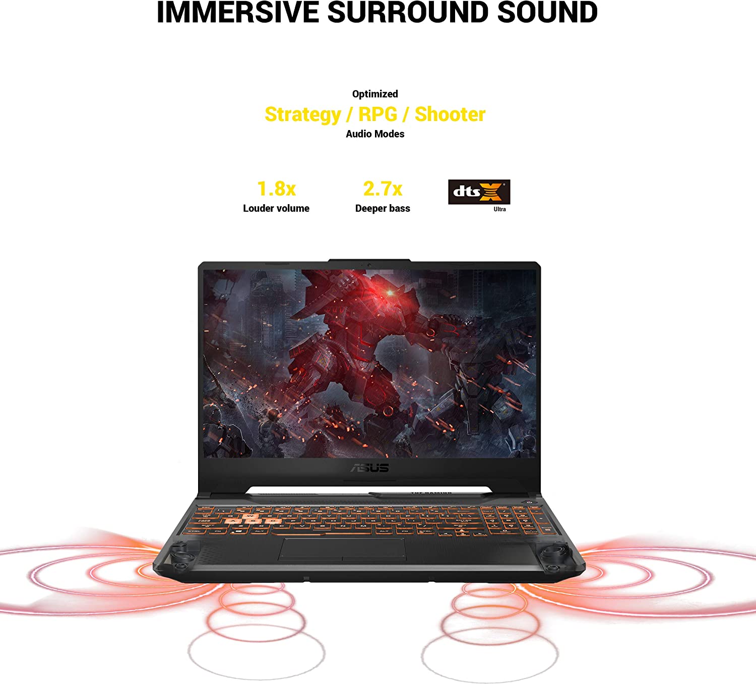 ASUS TUF Gaming TUF506 is a powerful Windows 10 gaming laptop that combines gaming performance with up to a narrow bezel 144Hz IPS-type panel and an extended lifespan, thanks to its patented Anti-Dust Cooling (ADC) system. Equipped with NVIDIA GeForce graphics, octa-core AMD Ryzen processor, and solid-state storage. TUF506 is able to play the latest games and multitask with ease. TUF506 features one of the fastest Wi-Fi standards available — the latest Intel Wave 2 Wi-Fi 5 (802.11ac) boasts data transfer rates of up to an incredible 1.7Gbps. To top it all off, it’s RGB backlit gaming keyboard is rated at 20-million keystroke durability.The actual transfer speed of USB 3.0, 3.1 (Gen 1 and 2), and/or Type-C will vary depending on many factors including the processing speed of the host device, file attributes and other factors related to system configuration and your operating environment.