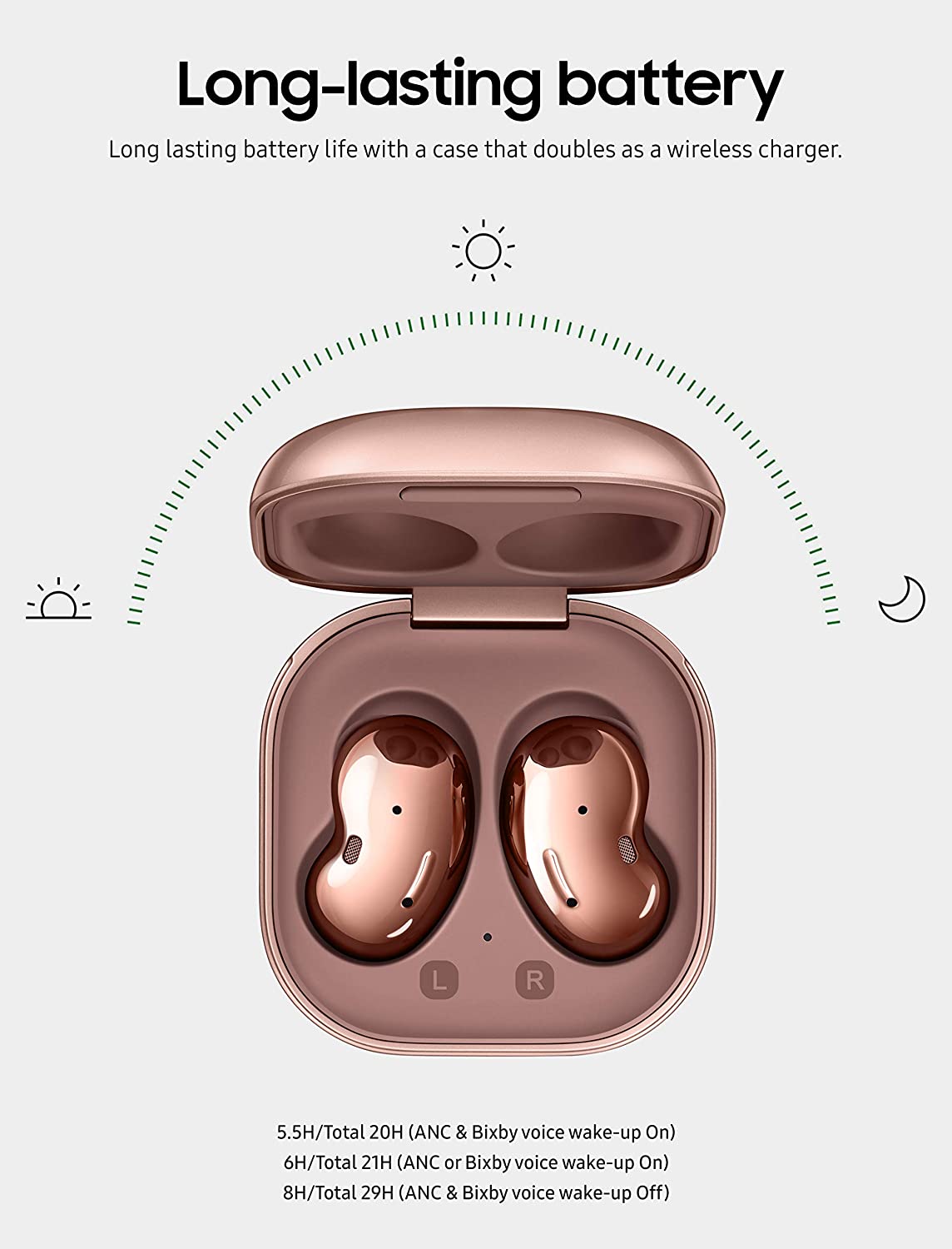 • LONG-LASTING BATTERY: Long-lasting battery life with a case that doubles as a wireless charger.