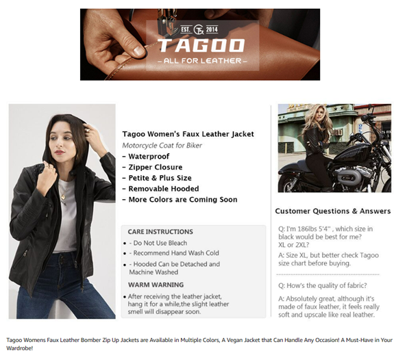 Quality Materials: Tagoo leather jackets for women made of soft faux leather, windproof, keep you warm in winter, fall and spring.