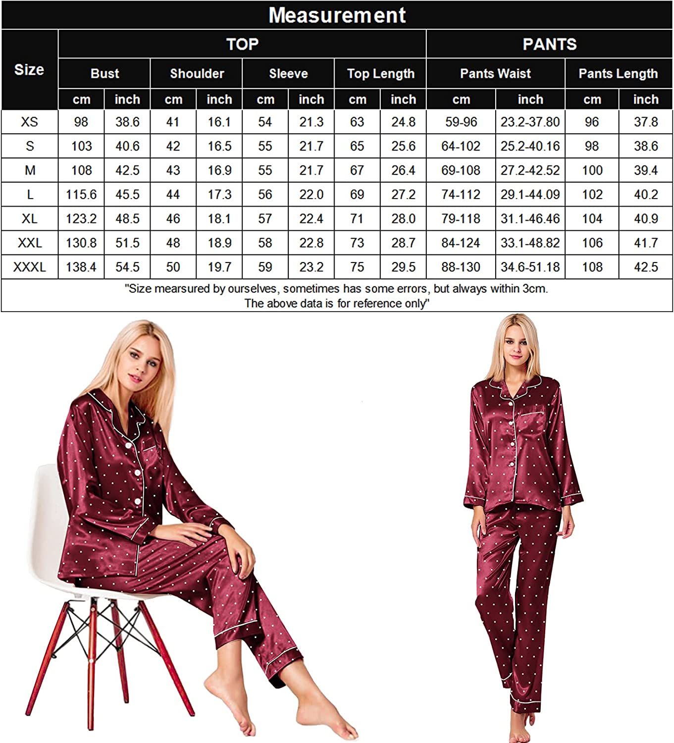 Gift: Women's silk pajamas for women is made of high quality imitation silk fabric, it is soft and natural shiny. Great Choice For your Wife, Girlfriend, Mother, Sister and Doughter as a Birthday gift and Great Present for New Year, Valentine's Day, Christmas Day, Bridal Party Gifts, Honeymoon Vacation or other Festivals or Anniversaries.