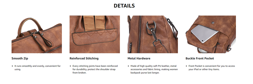 Durable Material: Made of high-quality PU leather with reinforced stitching, gun-tone hardware, soft fabric lining, and durable canvas shoulder straps, double zip design for convenience. Buckle front pocket design as an eye-contacting element, gives you confidence with this leather backpack purse.