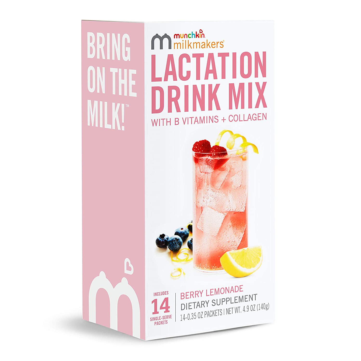 Munchkin® Milkmakers® Lactation Drink Mix Supplement with B Vitamins/Collagen/Fenugreek & Milk Thistle for Breastfeeding Moms, Berry Lemonade, 14 Count
