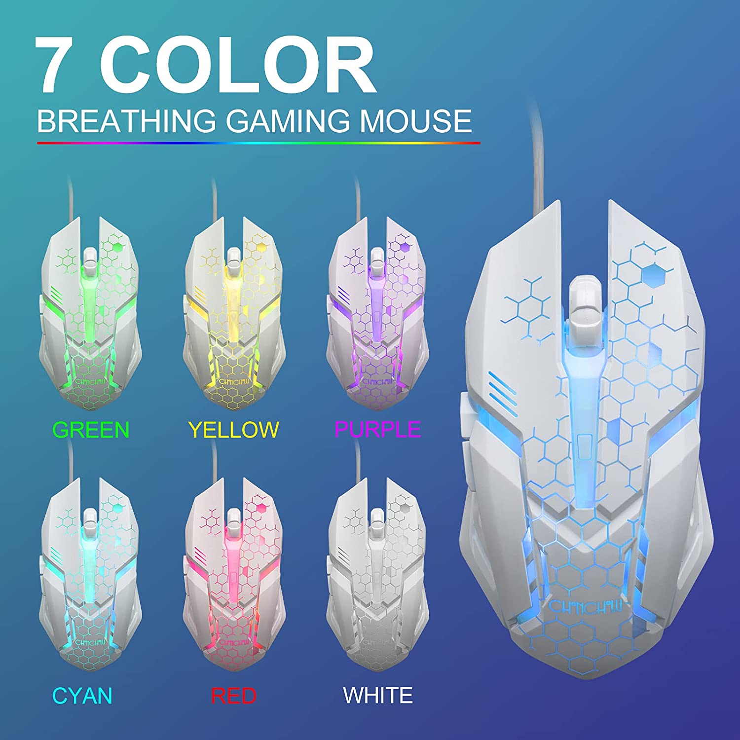 • 【Wired Gaming Mouse】The USB wired gaming mouse features a high-precision sensor and low-friction PTFE feet to give you precise and smooth control. Easily switch among four DPI (dots per inch) levels (1200/1800/2400/3600). 6 buttons (2 side buttons). Long press the DPI button to switch between 7-color breathing and red light modes.